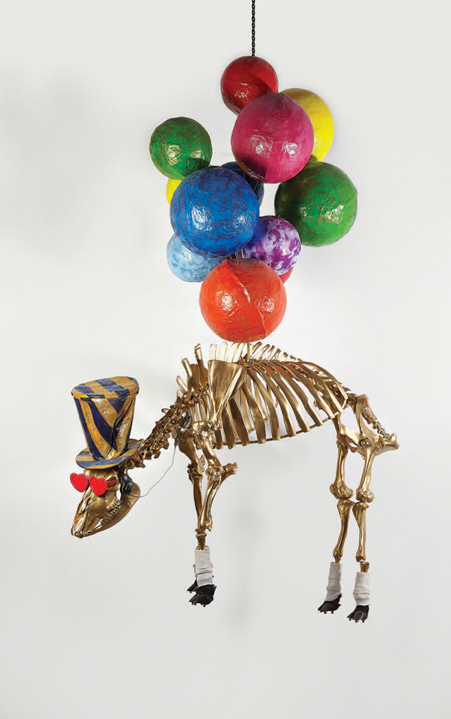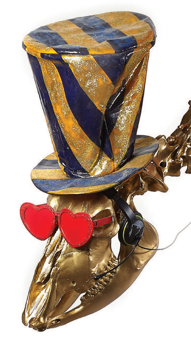 Material: Esqueleto de vaca, cartapesta y objetos.
