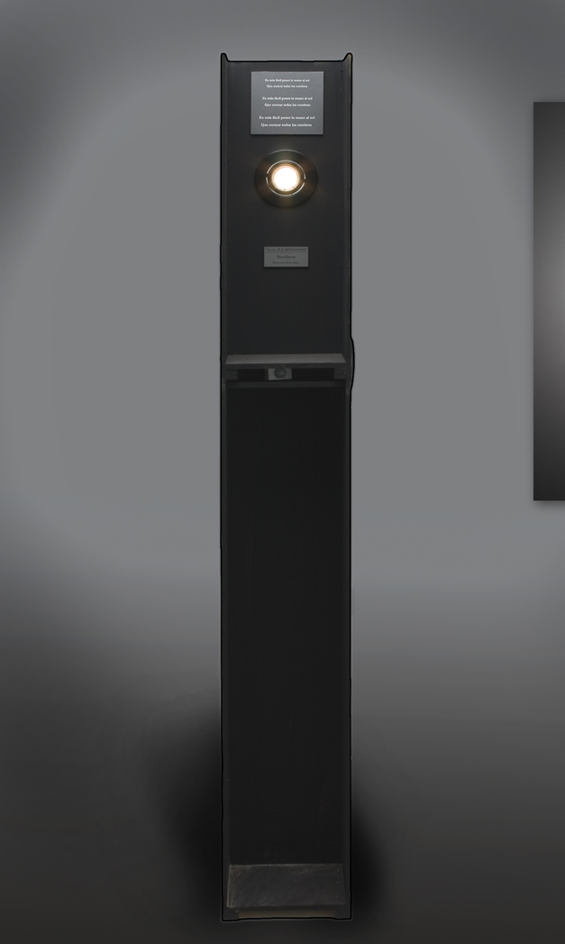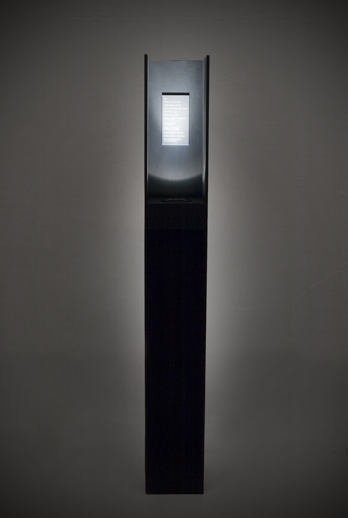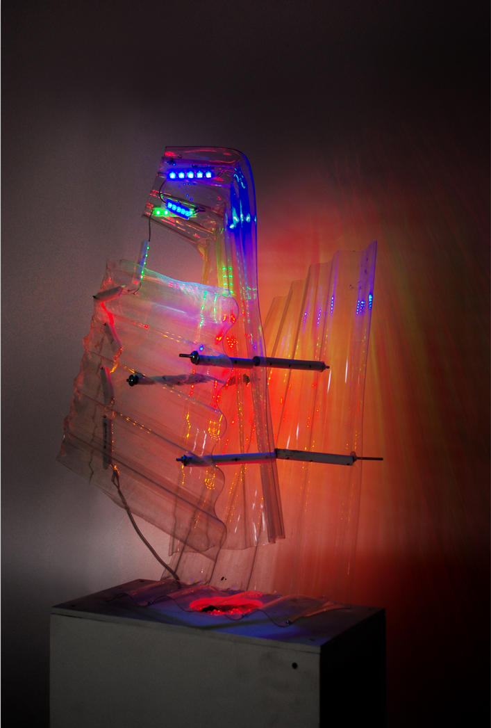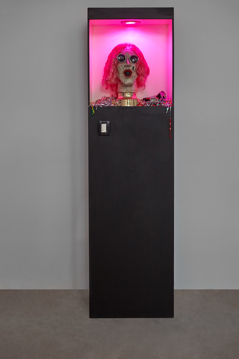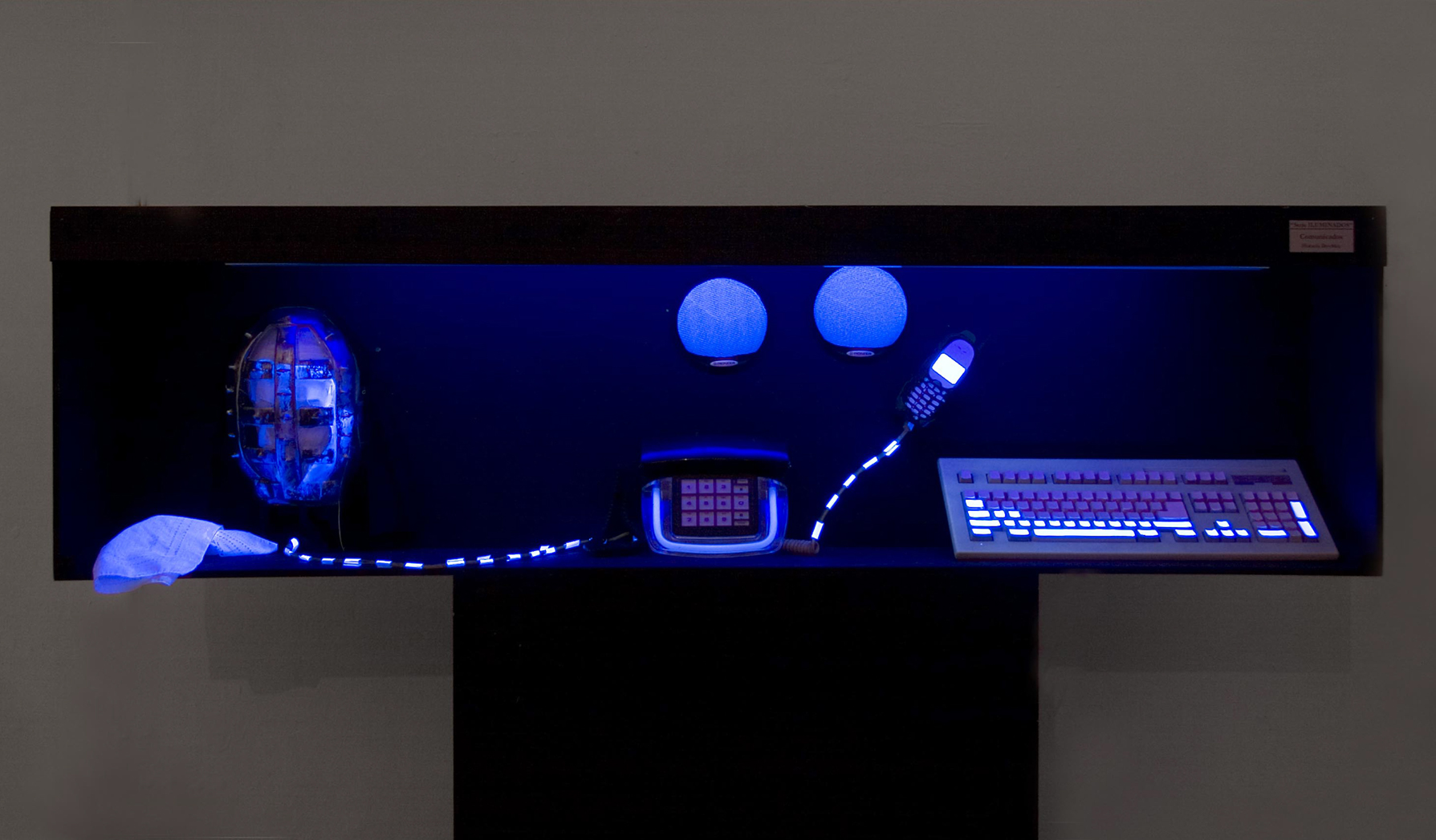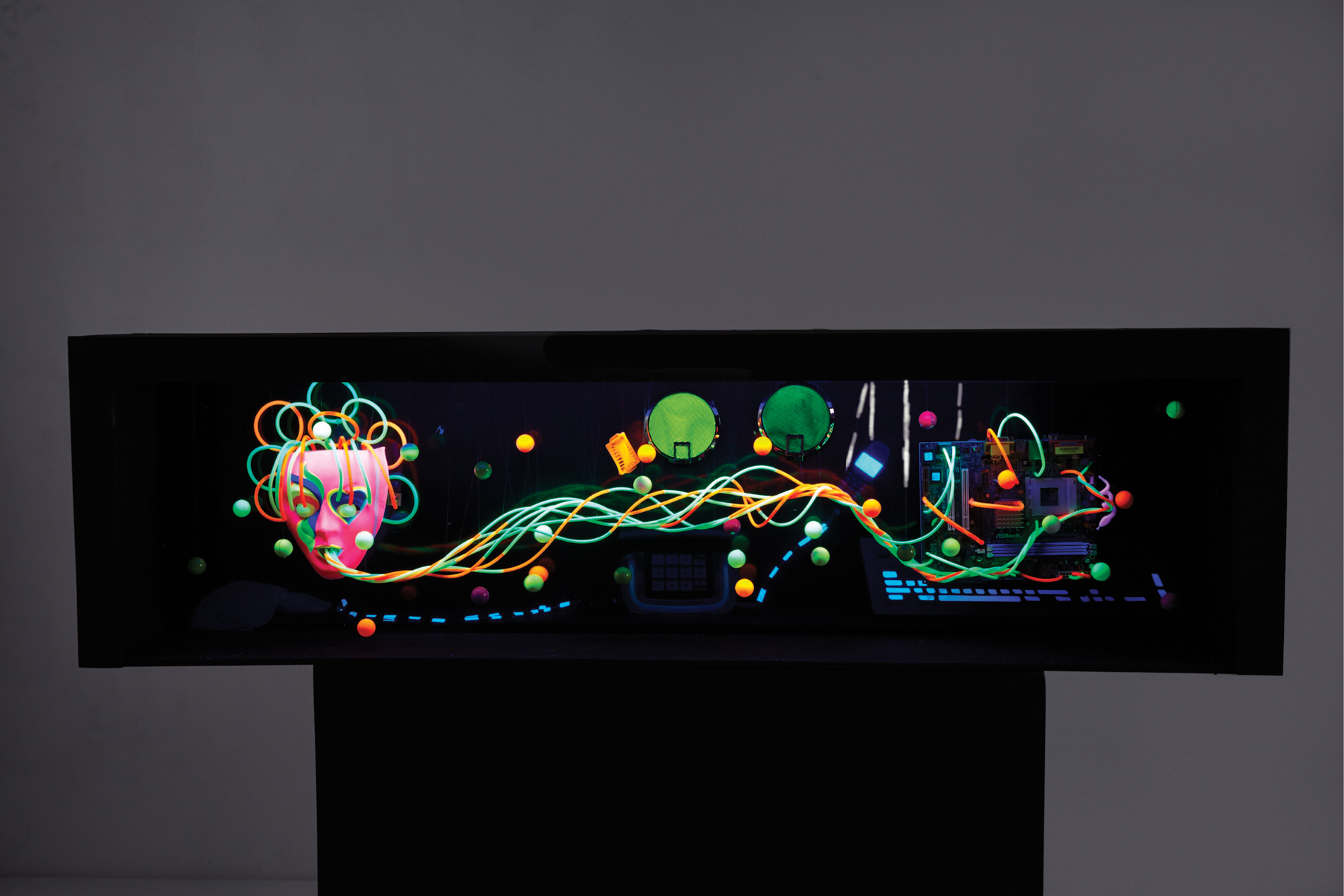 Material: Caja de MDF, fluorescencia, vinilo y objetos.