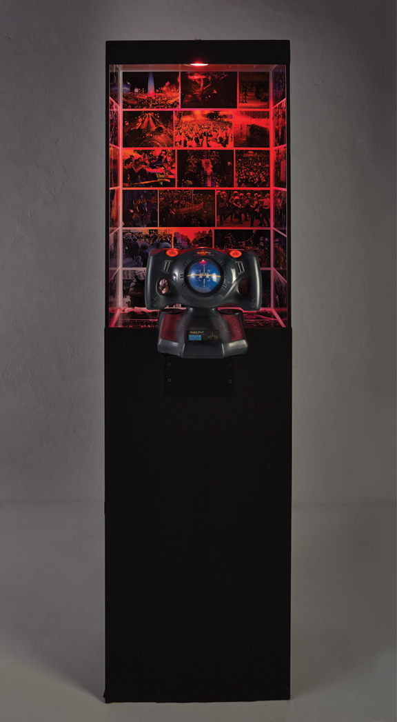 Material: Caja de MDF, iluminación, vinilo y joystick.