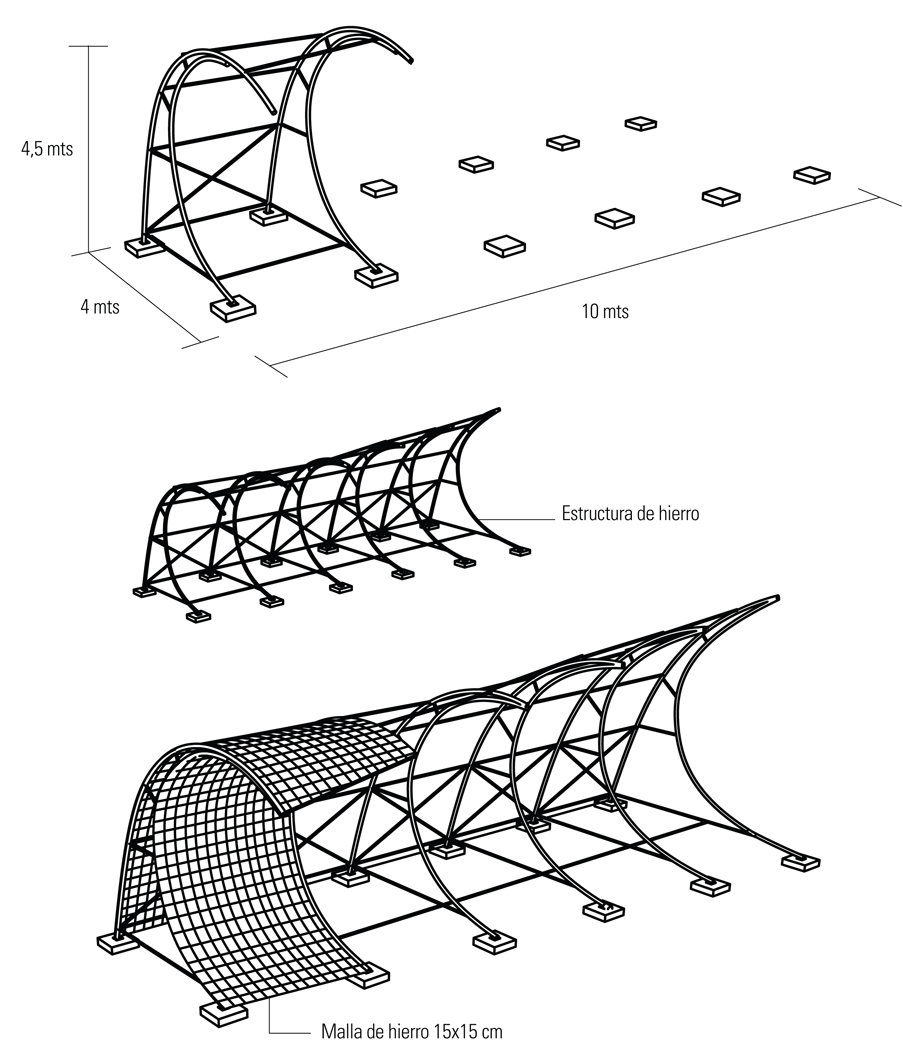 paneles se fijarán a una estructura de hierro, que conformarán la ola
