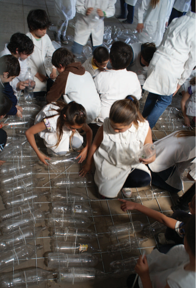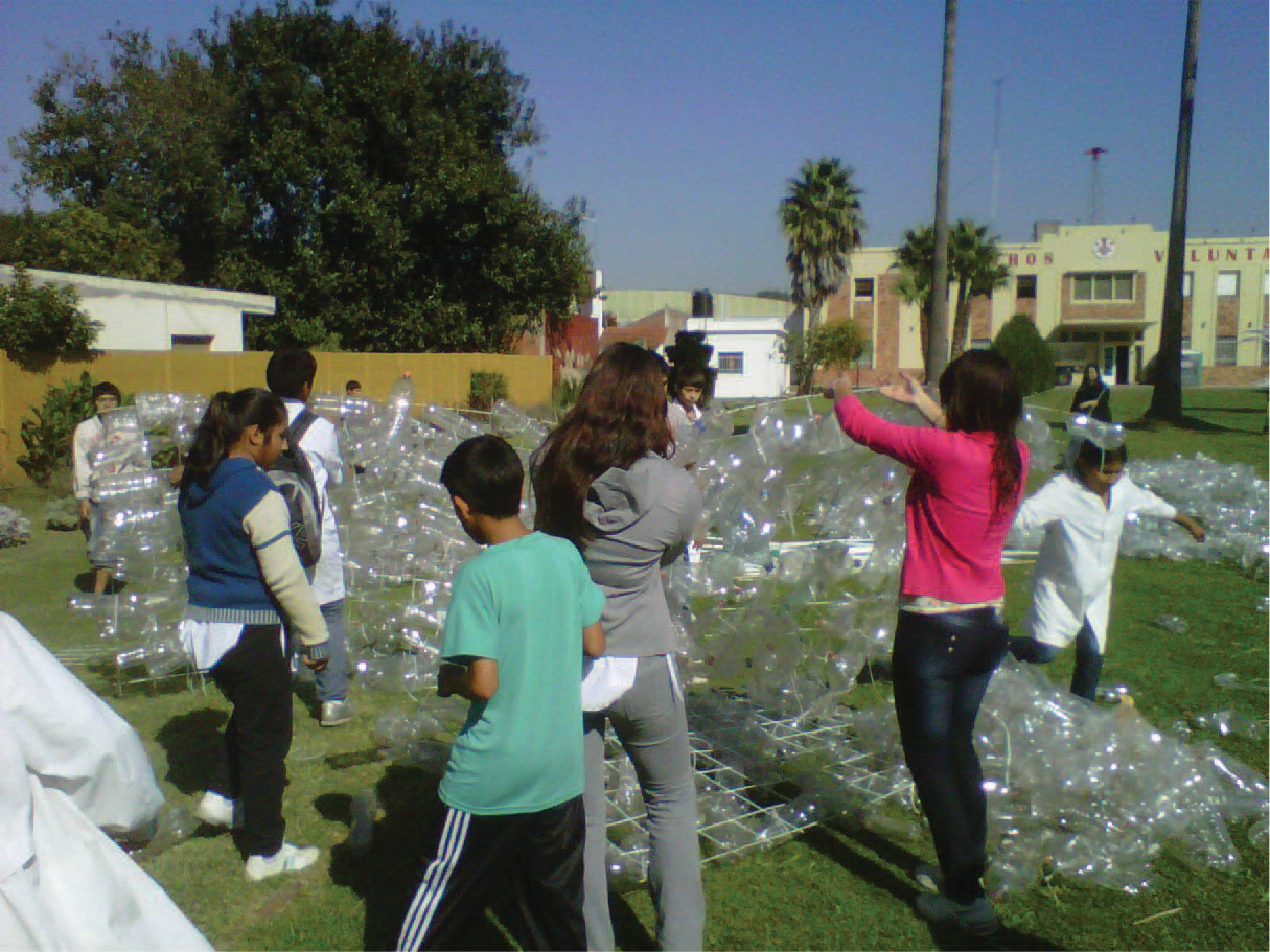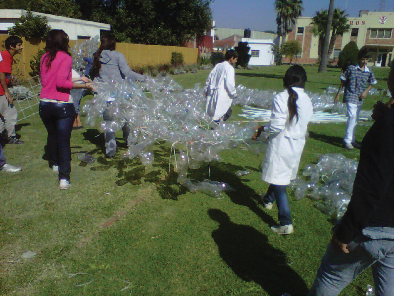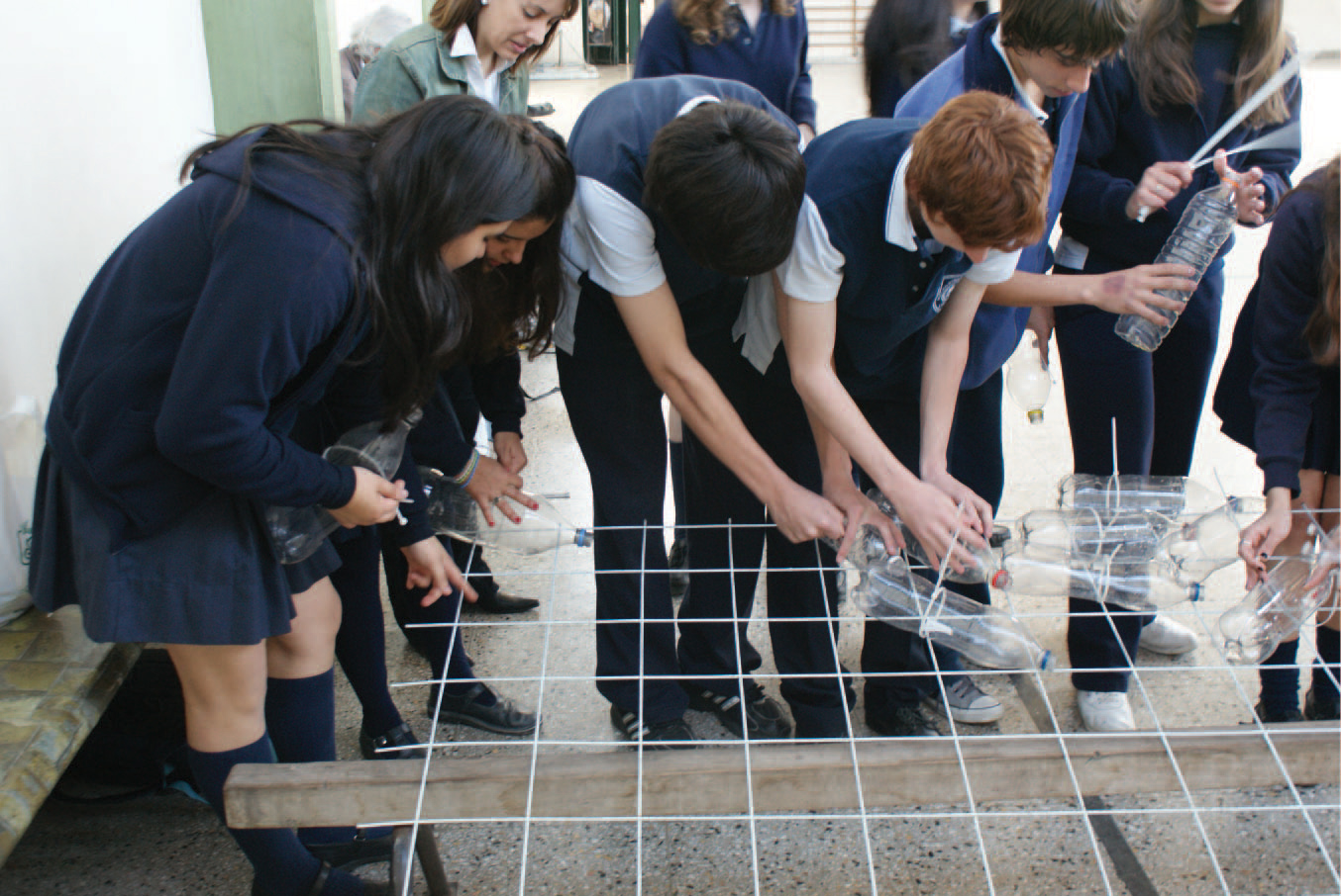 de escuelas de la zona. Cada uno posicionará, con precintos de plástico,
