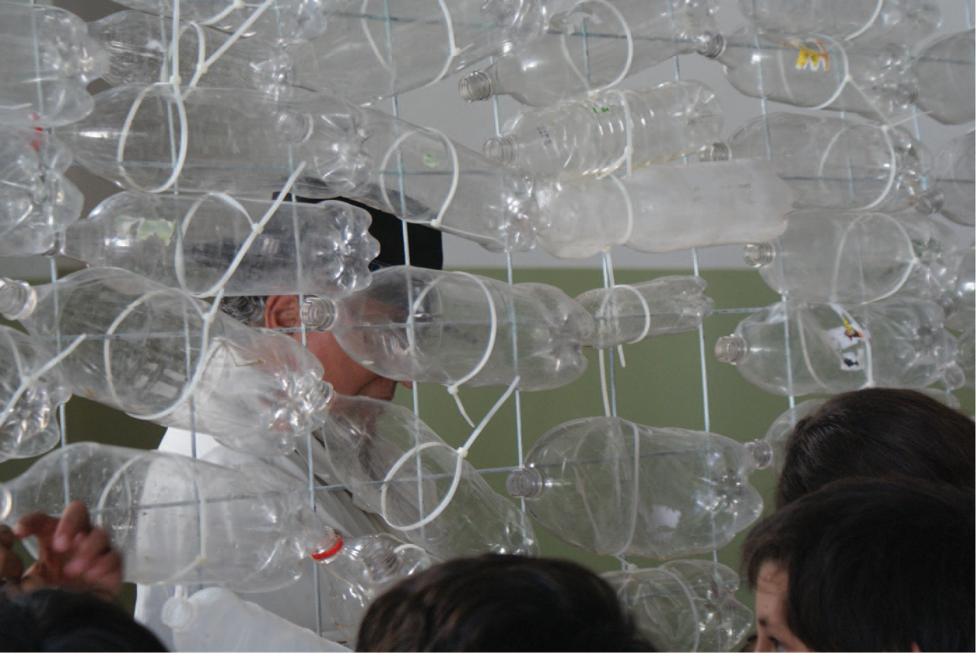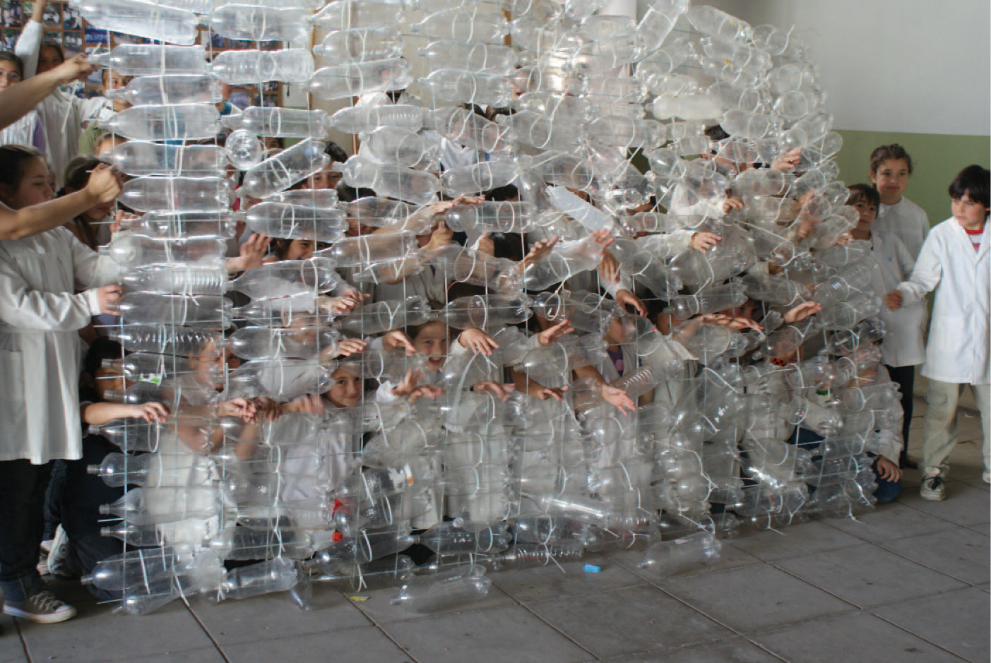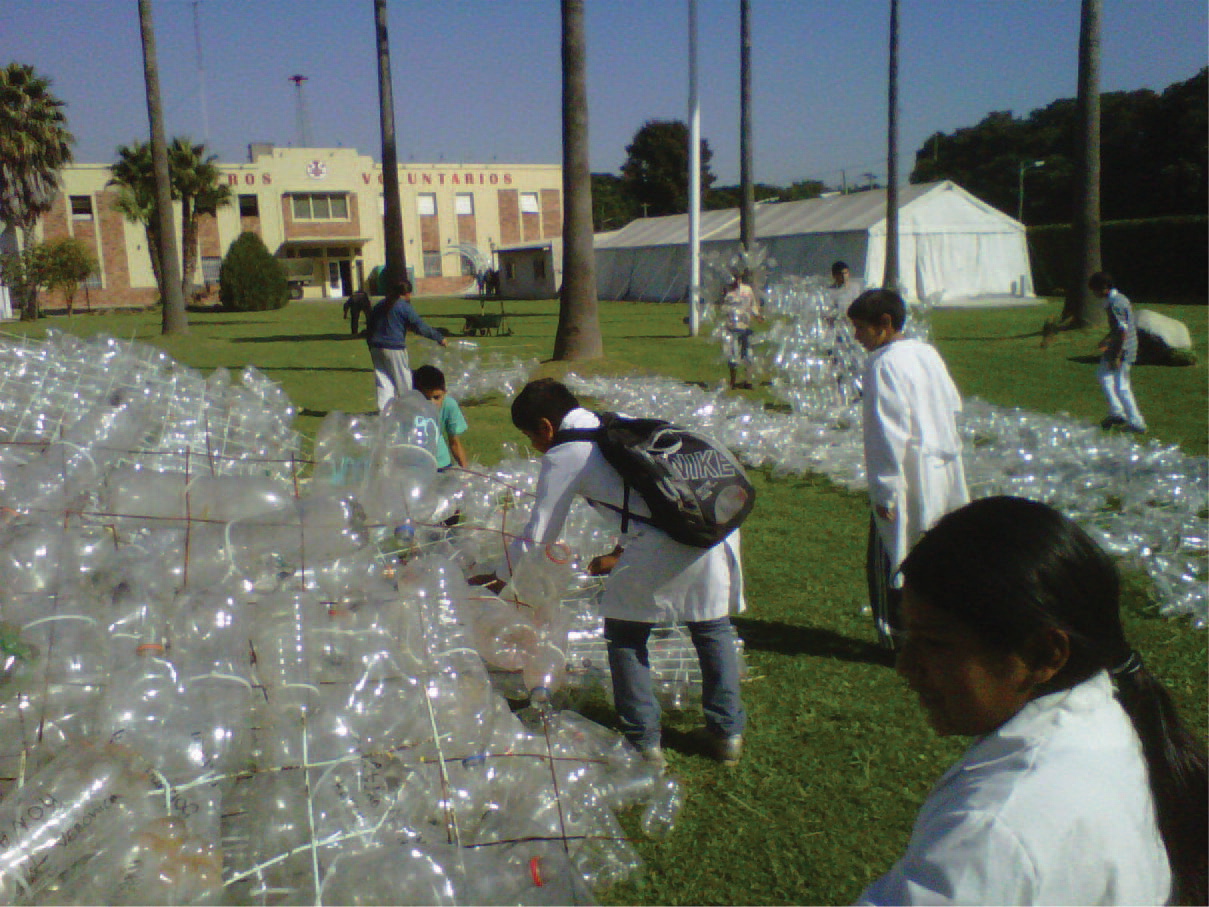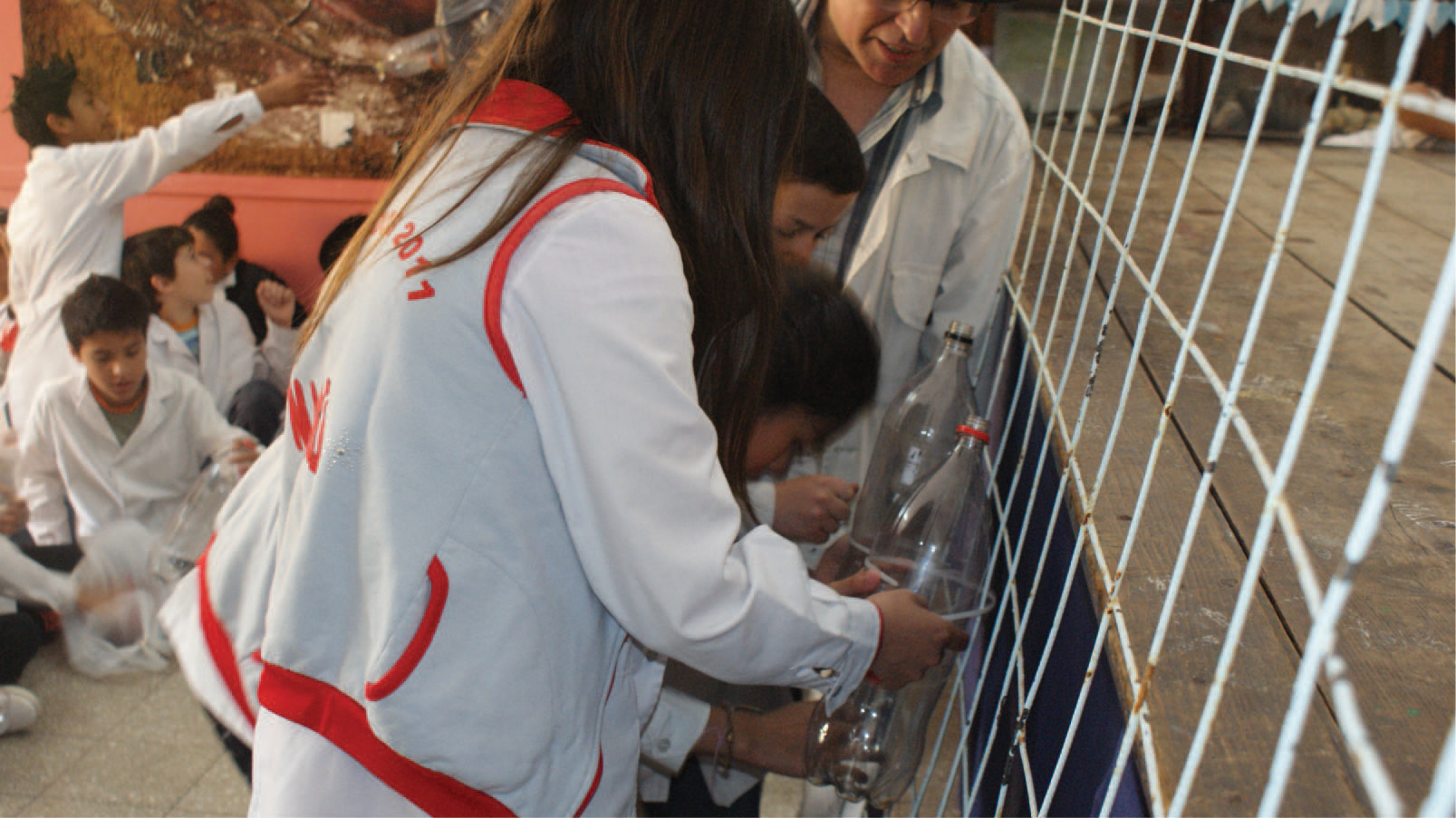 de escuelas de la zona. Cada uno posicionará, con precintos de plástico,
