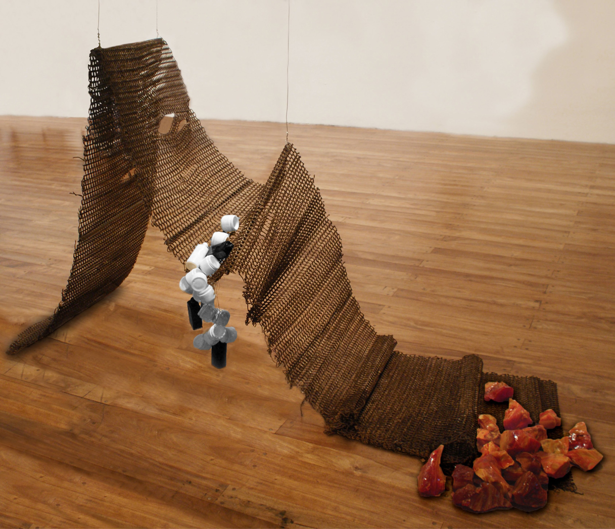 Material: Malla metálica, cerámico y rocas.